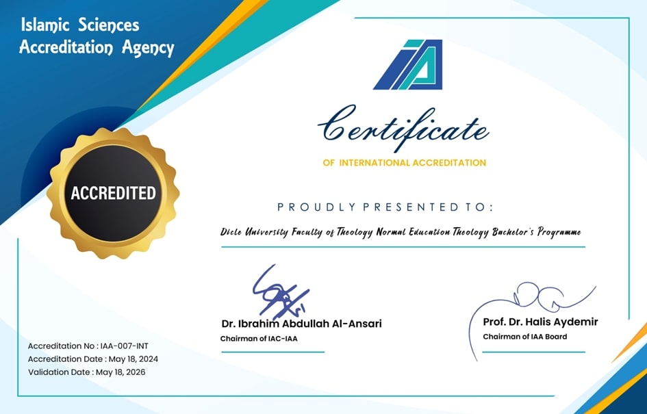 Dicle Üniversitesi İlahiyat Fakültesi Normal Öğretim Akreditasyon Belgesi